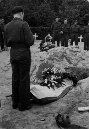 Indrukwekkende en emotionele ter aarde bestelling van soldaat Albert de Jong op 16 juni 1945 om 15.30 uur op de Canadese begraafplaats Jonkerbosch. Waarschijnlijk heeft Albert de Jong tijdelijk hier gelegen en is hij later herbegraven op het Canadese kerkhof aan de zevenheuveleweg te Groesbeek, dit Canadese kerkhof werd op 4 mei 1947 geopend door Koningin Wilhelmina |
