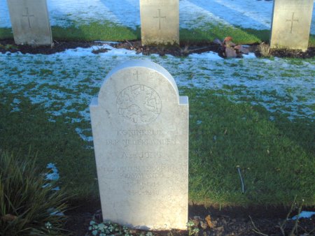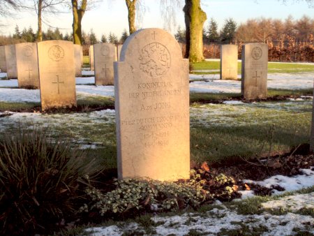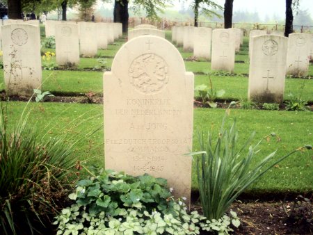 Levensverhaal van Albert de Jong Sinds enkele jaren is er een stichting in het leven geroepen die luistert naar de naam Faces to Graves (Gezichten naar Graves facestograves.nl) Deze stichting wil graag dat deze gesneuvelde Canadese militairen die op het Canadese militaire ereveld te Groesbeek liggen begraven niet alleen een naam en een steen hebben, maar ook dat ze een gezicht en een verhaal krijgen zodat het plaatje helemaal compleet is. Momenteel zijn de vrijwilligers van bovengenoemde stichting volop bezig levensverhalen aan het schrijven betreffende de Canadese militairen die hier al decennialang begraven liggen, één van deze militairen is Albert de Jong hij is de enige Nederlandse militair die hier begraven ligt, één van de vrijwilligers van Faces to Graves genaamd Sigrid Norde heeft een zeer mooi en zo gedetailleerd mogelijk levensverhaal geschreven over Albert de Jong, willen jullie meer weten over deze militair klik dan op deze link om het hele levens verhaal van Albert de Jong te lezen. |