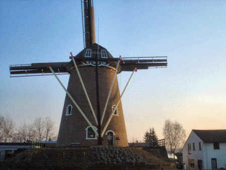 Op deze foto de zuid-molen van Groesbeek deze is gebouwd in 1857 bij deze molen wordt traditiegetrouw elk jaar op hemelvaartsdag de braderie gehouden, wilt u de website van de zuid-molen bekijken klik dan op de volgende link. |