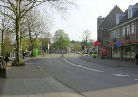 Mooie overzichtsfoto van de Dorpsstraat te Groesbeek. De foto is genomen in maart - april 2007