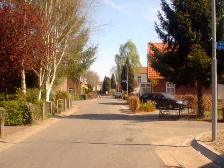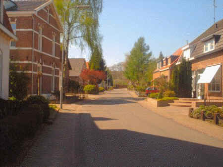 Deze foto's zijn genomen is genomen in de bosstraat anno april 2003 als u rechtdoor zou rijden dan gaat u richting het Groesbeekse bos, rijdt u een stukje rechtdoor en u gaat vervolgens linksaf dan gaat u richting het binnenveld, maar voordat u in het binnenveld komt passeert u eerst nog de spoorlijn Kleef - Nijmegen, deze sluiproute richting het binnenveld is binnenkort verleden tijd omdat de Gemeente Groesbeek van plan is deze sluiproute af te sluiten voor gemotoriseerd verkeer, alleen voetgangers en fietsers zouden dan nog gebruik kunnen maken van deze sluiproute. Op de onderstaande foto ziet u de bosstraat van de andere kant, als men per auto verder zou rijden dan komt men in de Ottenhofstraat uit, deze straat is vernoemd naar de voormalige burgemeester Ottenhof. |