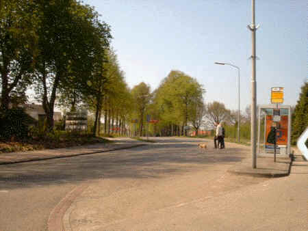| De foto links is genomen in april 2003 u kijkt hier richting de Nieuweweg | De foto rechts is genomen in april 2003 maar dan richting de dorpsstraat, om een vergelijk te van deze weg te zien maar dan hoe het in 1964 het er toen uitzag kunt op deze link klikken. |