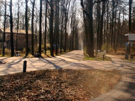 Op deze foto ziet u een kruising van wegen. Linksaf gaat u naar de knapheideweg richting klein Amerika, rechtdoor gaat u richting Mook en rechtsaf gaat u richting Molenhoek. De foto dateert van eind maart 2005 |