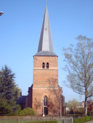 Prachtig foto van de voorzijde van de protestantse kerk aan de Kerkstraat te Groesbeek.