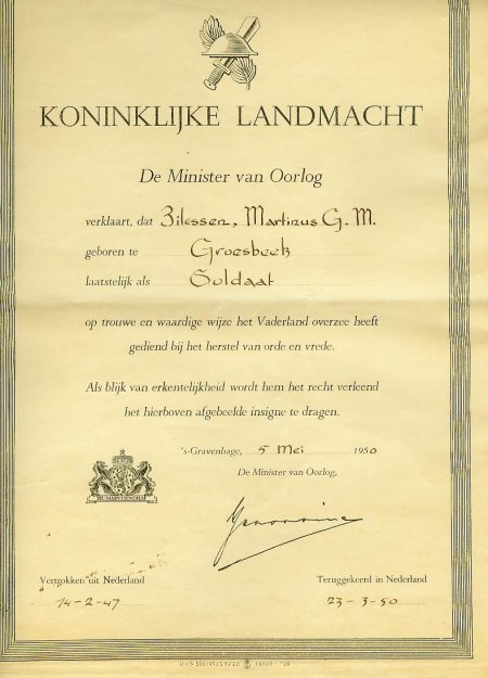 als dienstplichtig soldaat in de periode 1947 - 1950 in