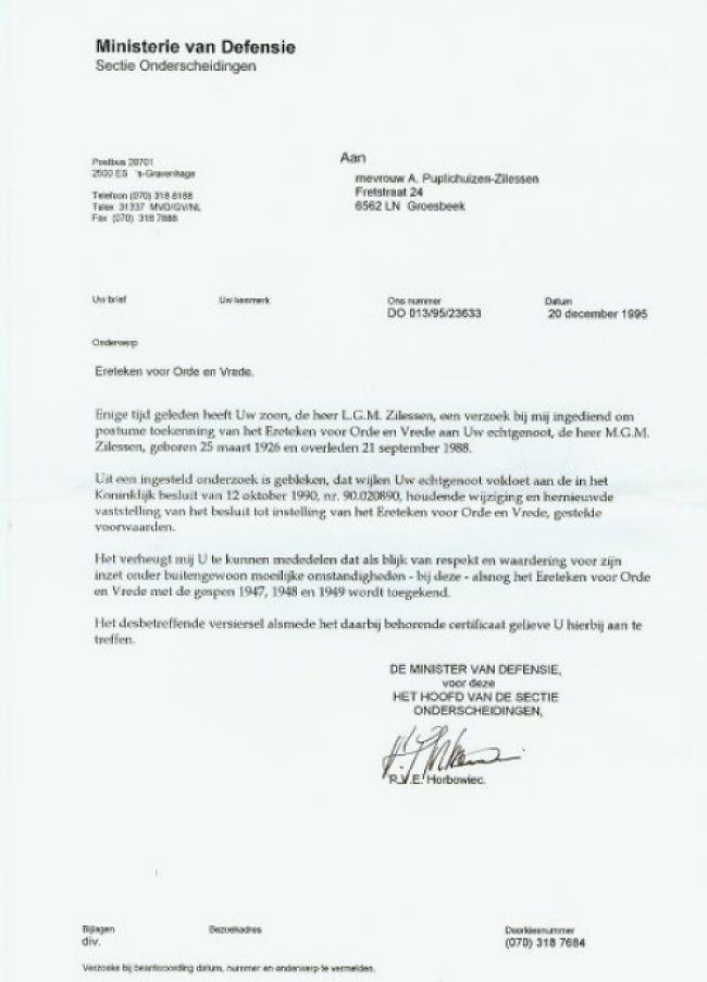andere documenten over Martien Zilessen betreffende zijn diensttijd in