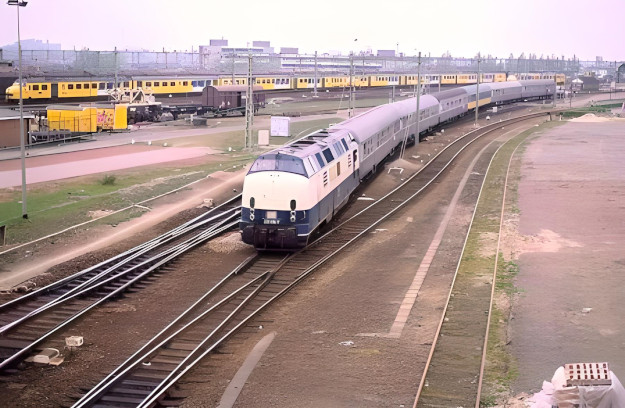 Hier verlaat treinstel 221 116 op 30 april 1988 Station Nijmegen om naar richting Kleef te rijden.De foto komt de de privécollectie van