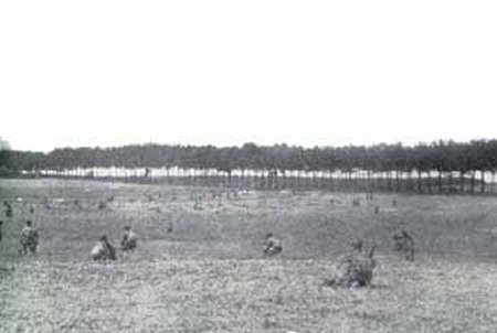 wat de parachutes vervoerden: de groene manschappen, de gele en rode