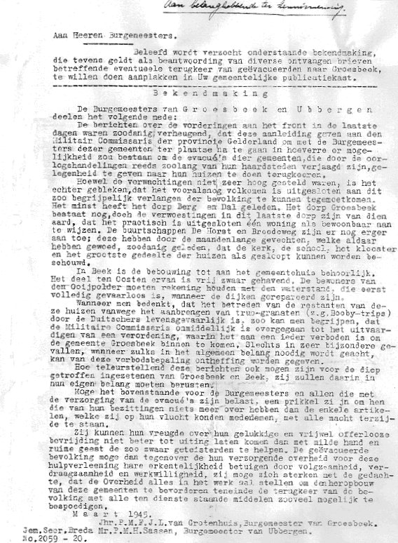 VERKLEINDE COPIE VAN BEKENDMAKING MAART 1945