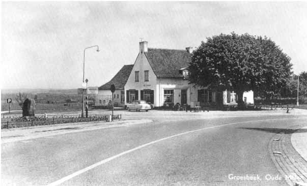 Zoals de ansichtkaart laat zien konden de gasten en passanten daar in die tijd genieten van een weids uitzicht. In 1960 was de zaak overgenomen door het echtpaar A. Fleuren-De Graaf, dat in 1982 het achterhuis liet verbouwen. De voormalige boerenschuur werd gesloopt voor de nieuwbouw van een zaal en keuken, met daarboven een aantal moderne hotelkamers. Het bedrijf is tot eind 1989 gastvrij beheerd door Toon en Tilly Fleuren, waarna het hotel-café werd verhuurd. Sinds 5 januari 1991 wordt het hotel-café uitgebaat door de familie Vincent en Margot Schoenaker, die sindsdien zorg dragen voor het, op één na, laatst overgebleven dorpshotel. Een verantwoordelijke taak. Meer informatie over dit Hotel kunt u vinden door op de volgende link te klikken. Tegenover het hotel café de oude molen waar eens de uitzichttoren heeft gestaan vindt u ' het politiebosje' klik op deze link om de foto van 'het politiebosje te bekijken. Tevens ziet u hier de molenweg waar dit hotel aan is gelegen, deze weg loopt richting het centrum van Groesbeek vanaf deze kant gezien, klik op deze link om de foto te bekijken anno april 2003 op ongeveer de zelfde locatie maar dan genomen richting de nieuwe weg. Noot van de webmaster: wilt u van de bovenstaande prent zien hoe het op exact de zelfde plek erin 1938 uit zag klik dan op deze link. |