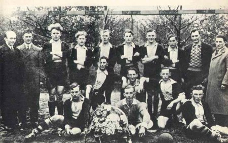 Voetbalclub 'Groesbeekse Boys' De R.K.S.V. ,,Groesbeekse Boys'' is de oudste voetbalvereniging in de parochie Bredeweg. In een vergadering op koninginnedag 1930 in café H. van Breemen werd door alle ,,Bruukse'' voetballiefhebbers besloten Groesbeeks derde voetbalclub op te richten en deze de naam te geven ,,Groesbeekse Boys''. Met vereende krachten werd achter het café aan de Grafwegen, tevens clublokaal, een stuk weidegrond herschapen in een voetbalveld. Het terrein werd gratis beschikbaar gesteld door de eigenaar, Hendrik van Breemen. De eerste werdstrijd werd gespeeld tegen Achilles II'' en verloren met 5-2. Van de club uitkomend in de R.K.F. derde klasse, vormden Th. Kaspers, M. van Kesteren en J. Kersten het eerste bestuur. Dit bestuur werd later uitgebreid met onder anderen Wim Wolters, die nu al meer dan veertig jaar bestuurslid (jarenlang als secretaris) is geweest en momenteel nog steeds werkzaam is als wedstrijdsecretaris. Hij is samen met H. Janssen (Hend de Bij), van grote betekenis geweest voor de ,,Boys''. In 1933 werd het eerste kampioenschap in de derde klasse behaald door ,,Beuningen'' met 3-2 te verslaan. De kampioensvlag kon wéér gehesen worden in 1937, toen op eigen terrein (eveneens met 3-2) ,, Concordia'' verslagen werd. Als anekdote kunnen wij nog vermelden, dat Hend de Bij meteen na het eindsignaal met een ,,trekharmonika'' het veld op kwam en spelers en supporters al vast in de juiste stemming bracht voor het kampioensfeest. De voorzitters zijn in de loop geweest: Th. ,,Dos'' Kaspers, G. Janssen, H. Schaap, Toon Giebels (tevens jarenlang secretaris), A. Coenen en hop het ogenblik opnieuw Toon Giebels, (dit is allang achterhaald wat we leven in 2002 en niet meer in de jaren zeventig toen dit boekje werd uitgegeven.) die zodoende al meer dan twintig jaar de voorzittershamer hanteert. Patoor H. Hoek heeft zijn sporen verdiend als geestelijk adviseur van de club. Momenteel spelen de ,,Boys'' in de K.N.V.B,, derde klasse oost. Op de foto in het kampioenselftal uit 1937. Van links naar rechts, zittend: Thé Kerkhoff, Frans Bons (Biesmark) en Piet Janssen (de Bij). Geknield: Gerrit Thijssen, Paul Derks (uit Duitsland) en Jan Lamers, Staande: Wim Wolters, G. Janssen (de Klompenmaker), Toon Lamers, Wim Jansen (de Witte), Wienand Giebels, Hend Janssen (de Bij), Toon Giebels (de erwt), Cornelis Kamps, Wim Zwitserloot en Joem Derksen.