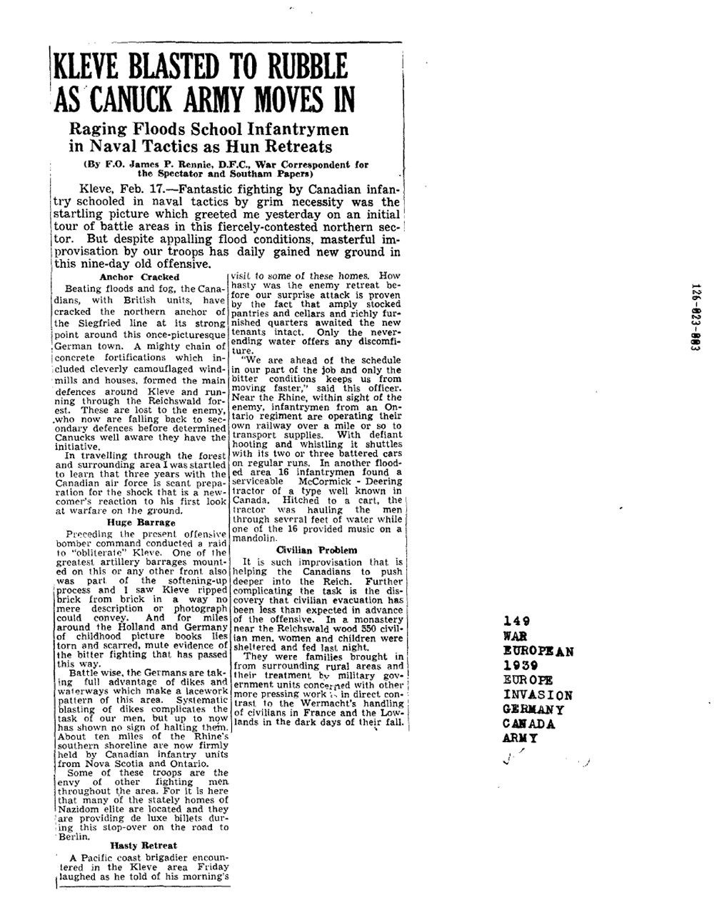 Kleve blasted to rubble as Canuck army moves in